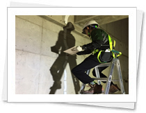 균열(CRACK)의 폭과 깊이를 측정한다 . 균열부위에