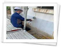 바탕처리 - 콘크리트 균열부위의 레이던스(LAITANCE),녹, 먼지, 부식물을 깨끗이 제거한다. -